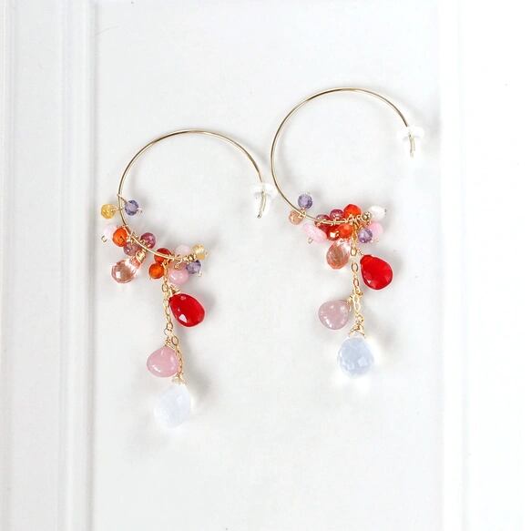 14kgf/アイスクォーツxカーネリアン彩小さな天然石フープピアス
