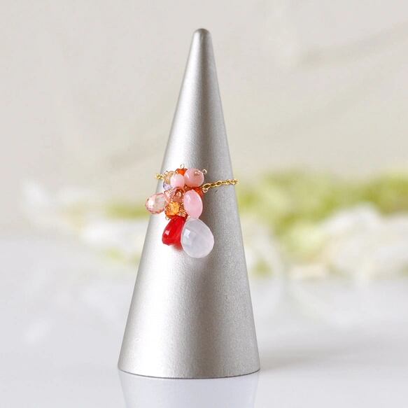 天然石:アイスクォーツ(10mm) / カーネリアン(7mm) / オレンジサファイア / ピンクアメジスト / オレンジトパーズ / ピンクオパール ほか