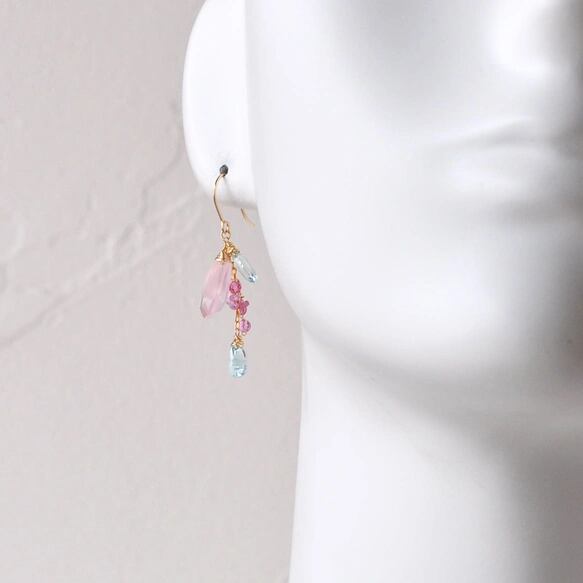 14kgf/アクアマリンxピンクサファイアxローズクォーツ ピアス