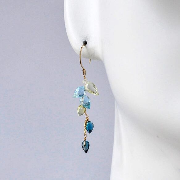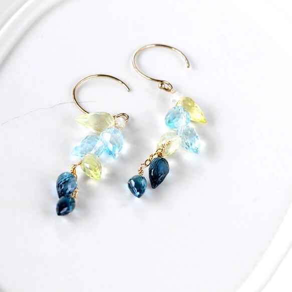 透明感あふれるブルートパーズにやわらかなレモンクォーツ、深い青が美しいロンドンブルートパーズ。
