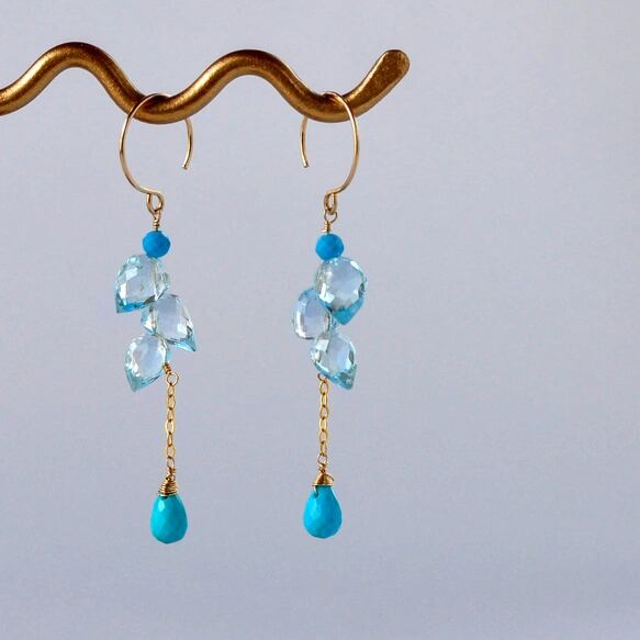 14kgf/ブルートパーズxスリーピングビューティーターコイズ ピアス