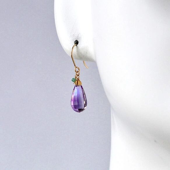 ・天然石:アメジストファセットカット15〜10mm/エメラルド