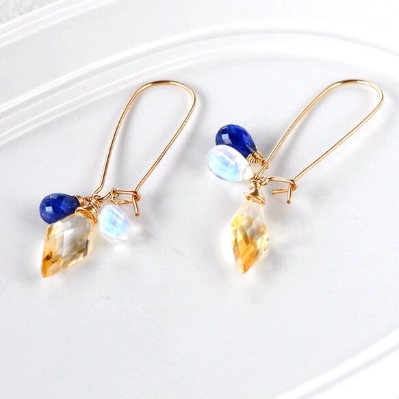 14kgf/シトリンxタンザナイトxレインボームーンストーン キドニーフックピアス