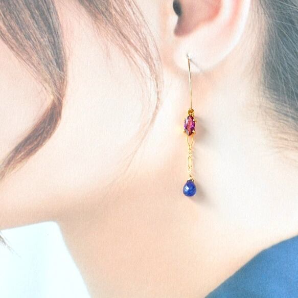ロードライトガーネットとタンザナイトをすっきりと縦に繋げれば、