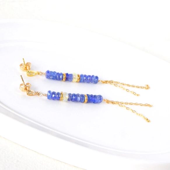 14kgf/タンザナイトxプレシャスオパールのラインピアス