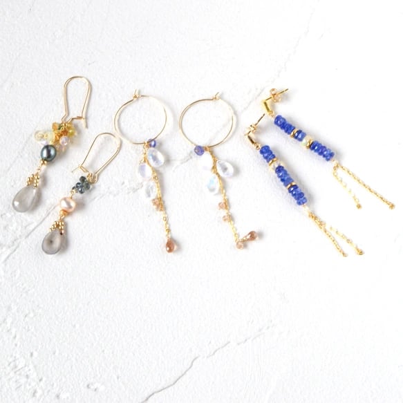 希少なセイロンムーンストーンを主役に様々な天然石やパールと合わせた