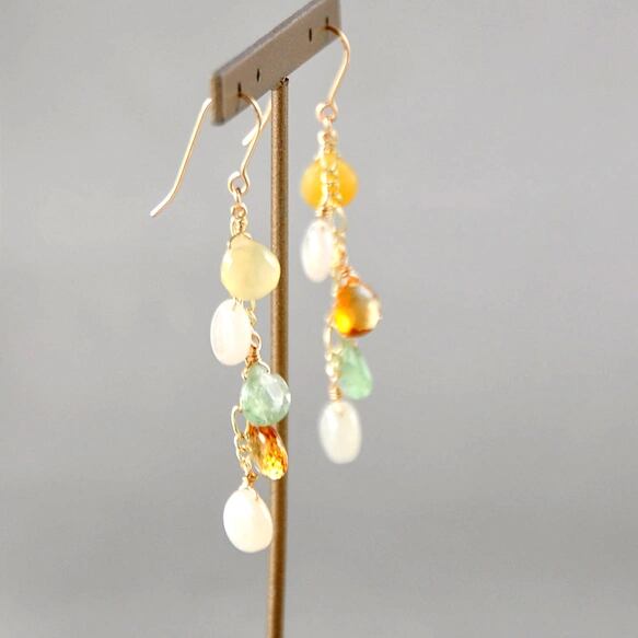 [Bloom Marron]イエローオパールxグロッシュラーガーネットxシトリン14kgfピアス