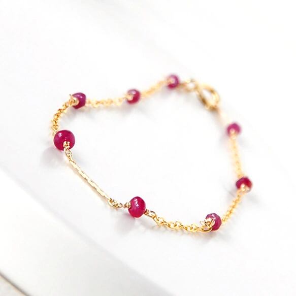 14kggf/可憐に繋がるルビー ブレスレット