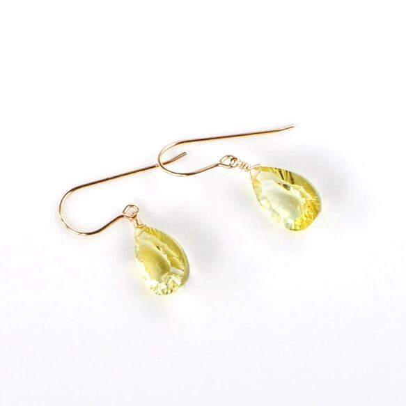 瑞々しい透明感と上品なレモンイエローが魅力の、レモンクォーツ・コンケーブカットピアスです。