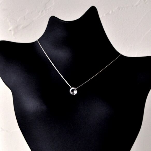 透明感あふれるクリスタルクォーツに、コンケーブカット(凹面カット)を施した一粒ネックレスです。
