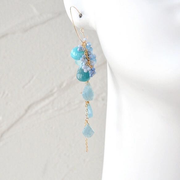 ・天然石:グランディディエライト14mm/アマゾナイト10mm/シーブルカルセドニー13mm/トロレアライト/ブルーオパール・ブルージルコン(コーティング)