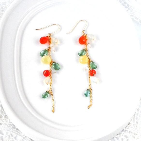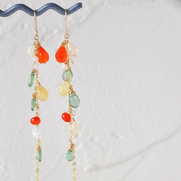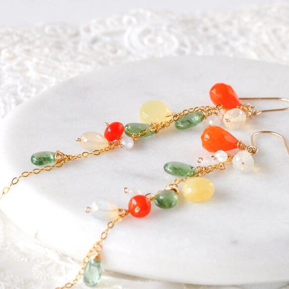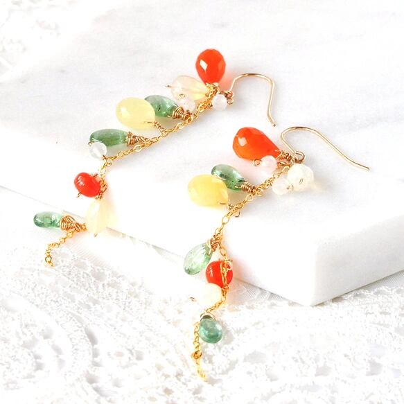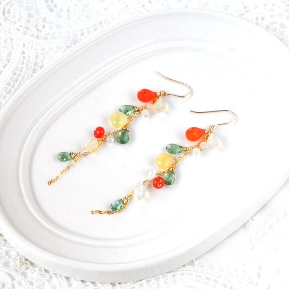Tropical Bloom/カーネリアンxイエローオパール弾けるロングピアス14kgf