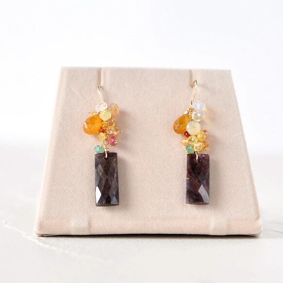 〜秋灯(しゅうとう)のサファイア〜 ブラウン・イエローサファイアxエメラルド・オパールピアス
