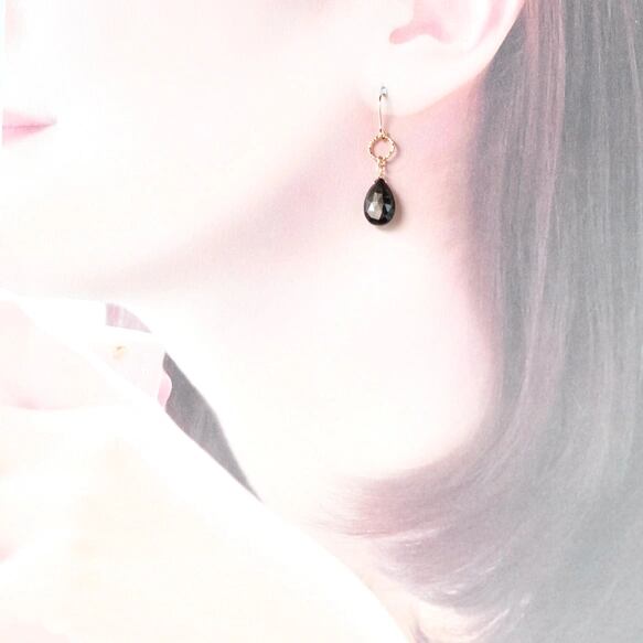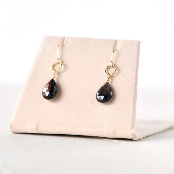 Black Shine ゴールデンシーンサファイア一粒ピアス14kgf