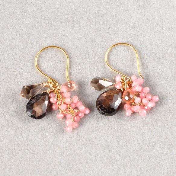 花暈のブーケ〜〜ゴールデンシーンサファイアxたわわなインカローズピアス14kgf