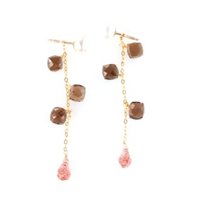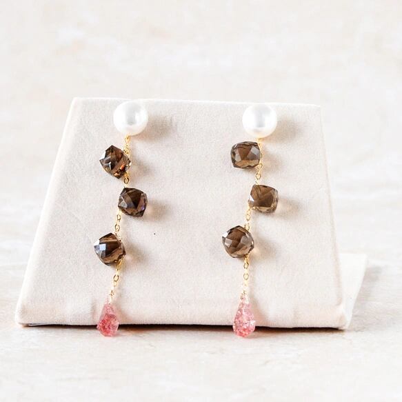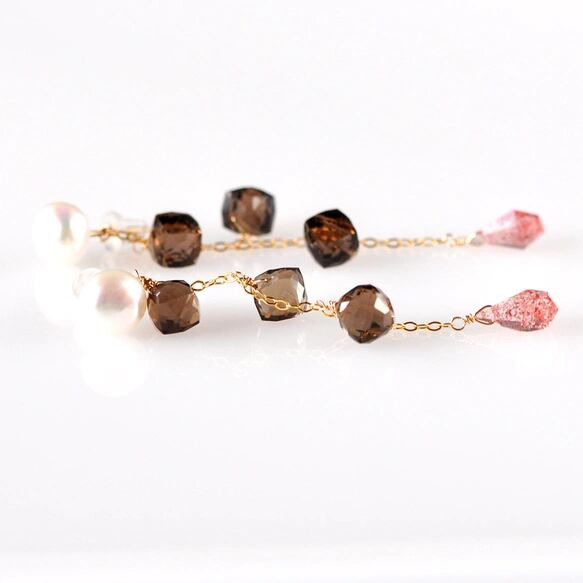 スモーキークォーツ ×× ボタン淡水パールスタッドピアス 2WAYピアス 14kgf