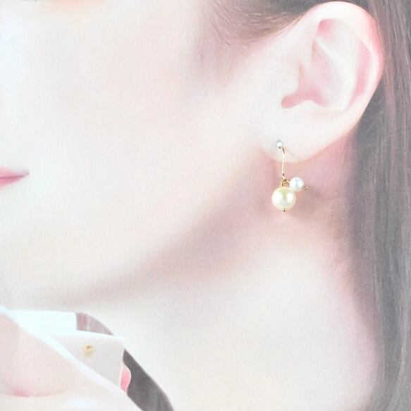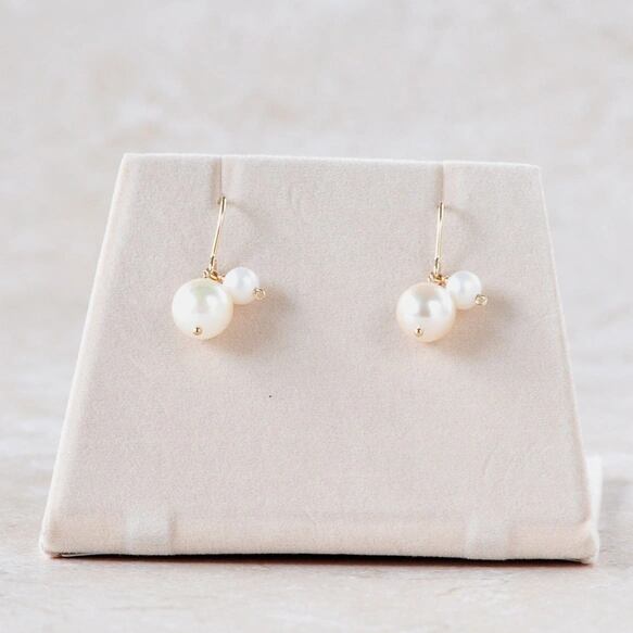 大小パールの組み合わせが、上品かつ可愛らしい印象