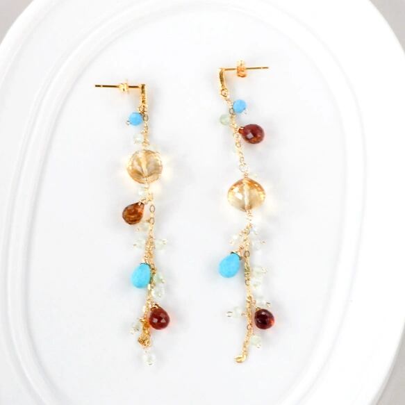 Citrine Flamme(シトリン・フラム)シトリンxマディラシトリンxターコイズピアス14kgf
