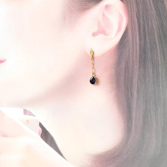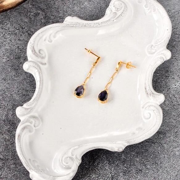 9月の誕生石アイオライトを使用した、枠留めペアシェイプファセットカットスタッドピアスです。
