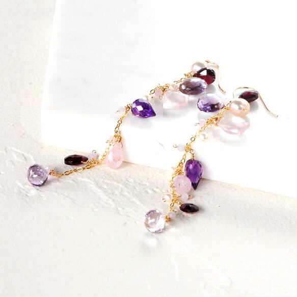 「コスモスの花のように」 アメトリンxアメジストxモルガナイトロングピアス14kgf