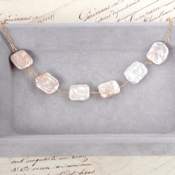 18mm以上の大ぶりサイズ、そして自然が生み出した立体的な凹凸感が魅力のスクエアシェイプバロックパール。
