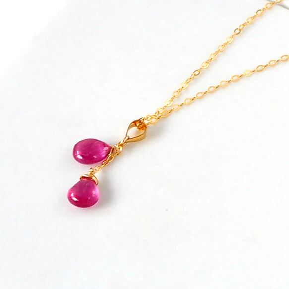 モザンビーク産ルビー2粒ペンダントネックレス14kgf