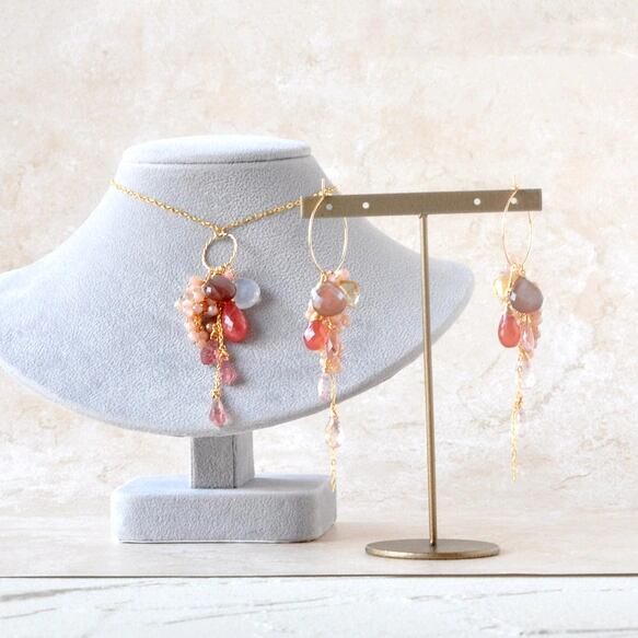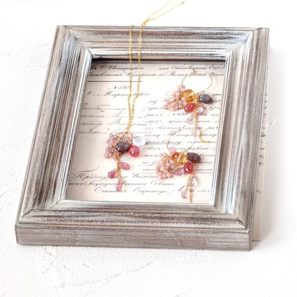 そこに淡いピンクのストロベリークォーツやピンクムーンストーンを添え、