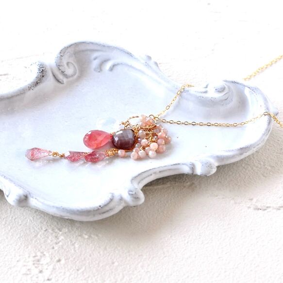 ネックレスには、より存在感のある大粒15mmのインカローズを主役に、
