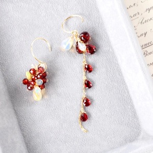 「深い秋の実り」― レッドガーネット×プレシャスオパール アシンメトリーピアス ―