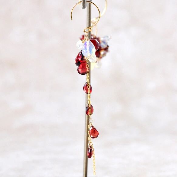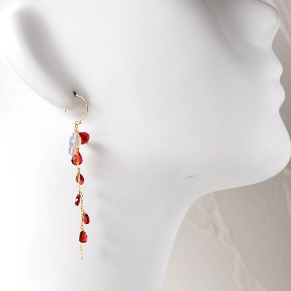 片側には、ガーネットオニオンカットの下にオパールとガーネットを優雅にチェーンで連ね、