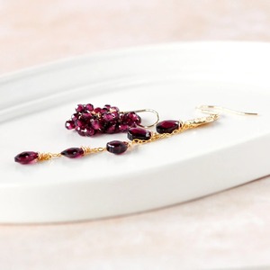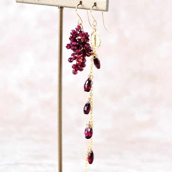 「秋のエレガンス」 ロードライトガーネット アシンメトリーピアス14kgf