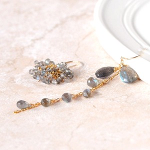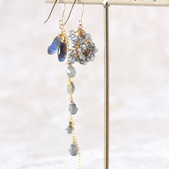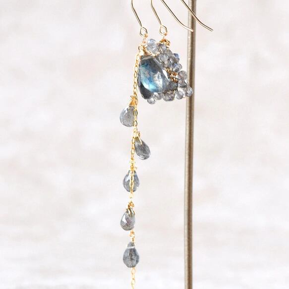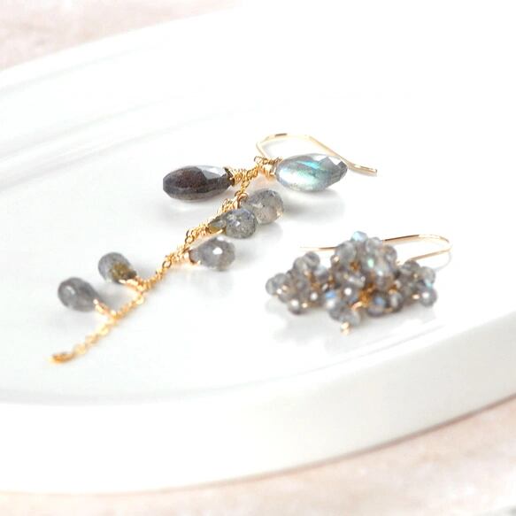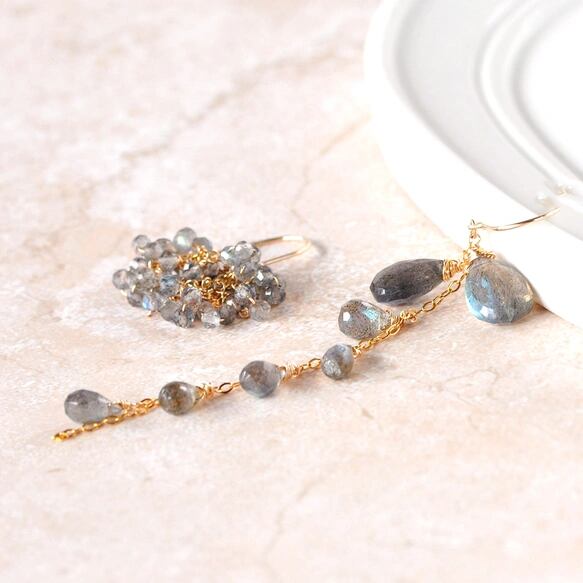 「[月光の青い光」― ラブラドライト アシンメトリーピアス ―14kgf