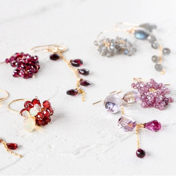 もう一方には、繊細な石を束ねてボリュームを持たせたアシンメトリーデザイン。