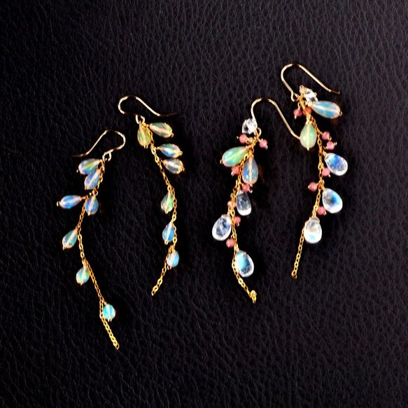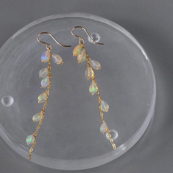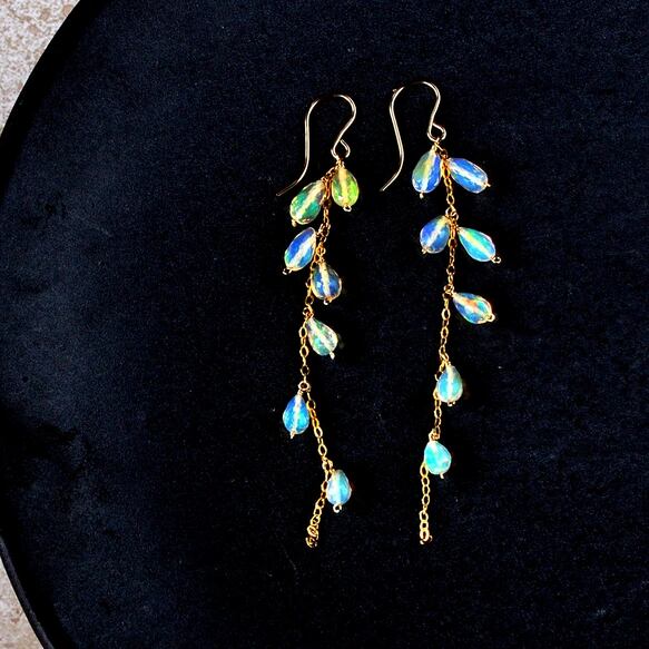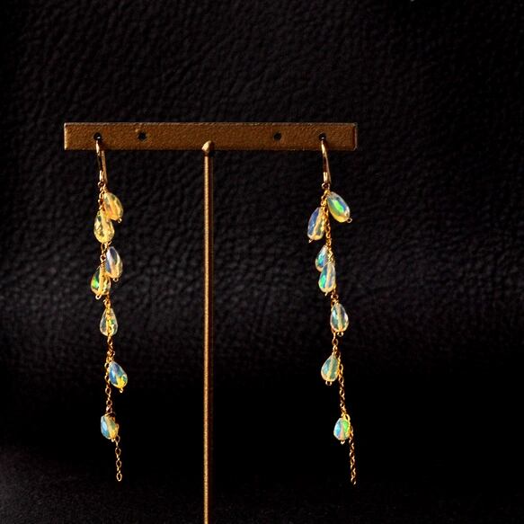 光雨― エチオピアプレシャスオパール ロングピアス ―