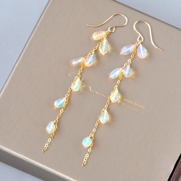 透明感あふれるエチオピア産プレシャスオパールのロングピアス。