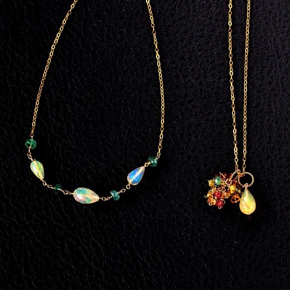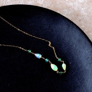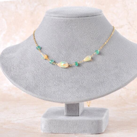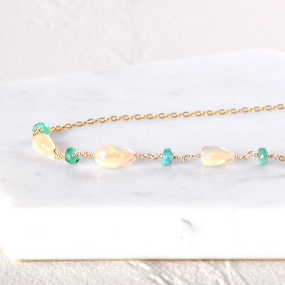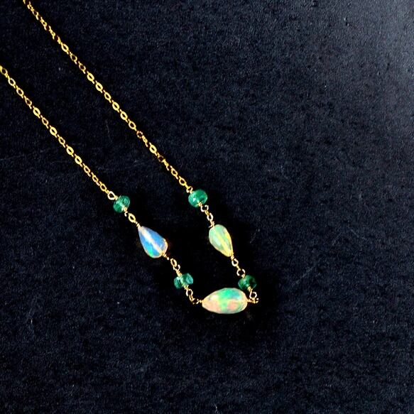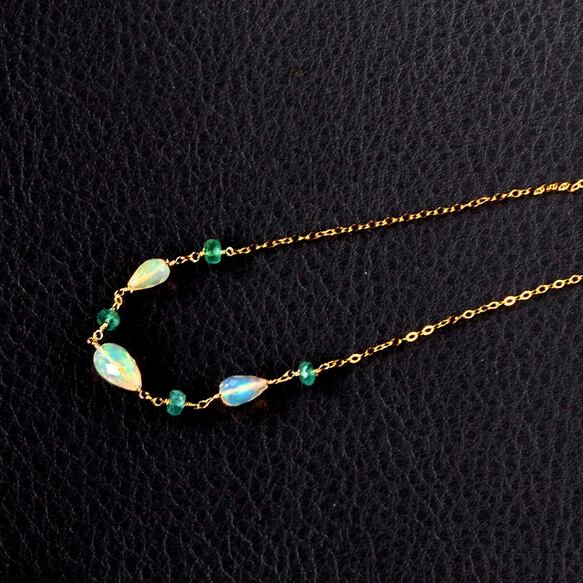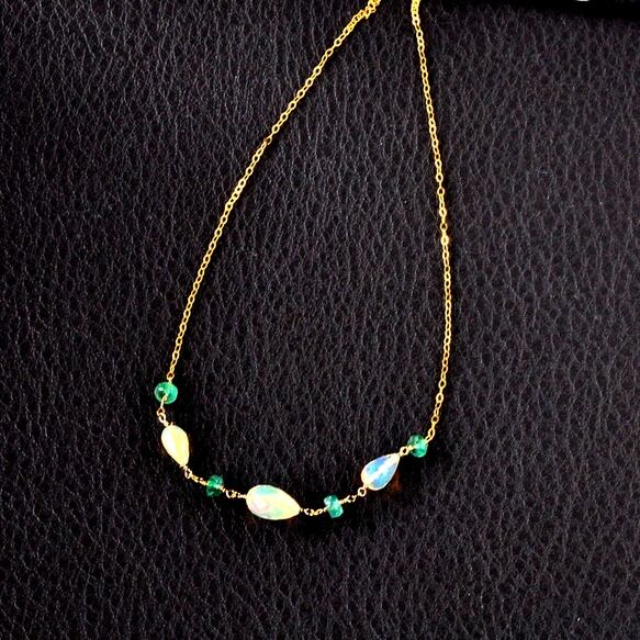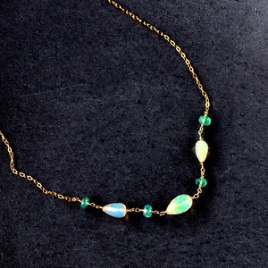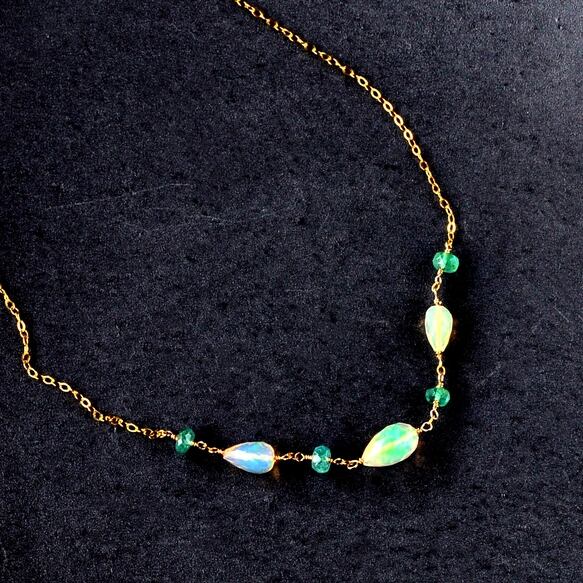 「翠光」エチオピアプレシャスオパールxエメラルドネックレス 14kgf