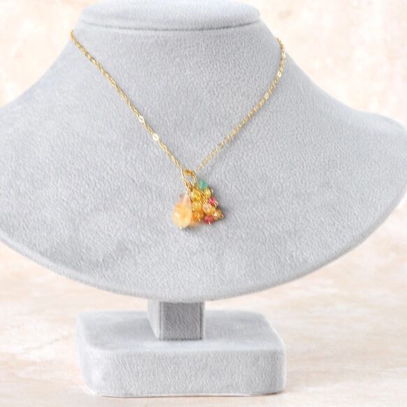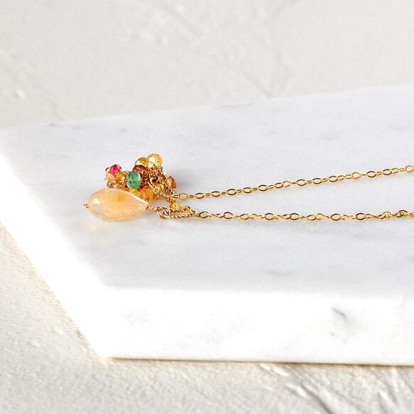 「燈華」エチオピアプレシャスオパールxイエローオレンジサファイアネックレス14kgf