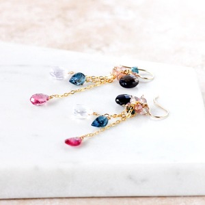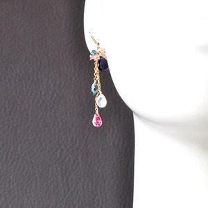 「空色の恋露」アイオライトxピンクトルマリンxスコロライトxロンドンブルートパーズピアス14kgf