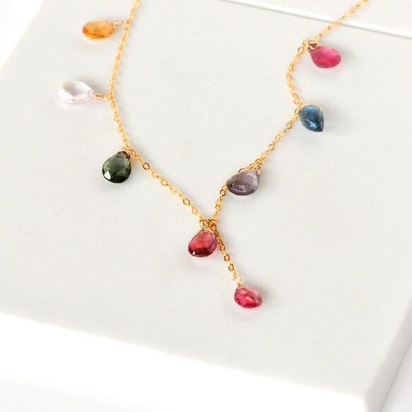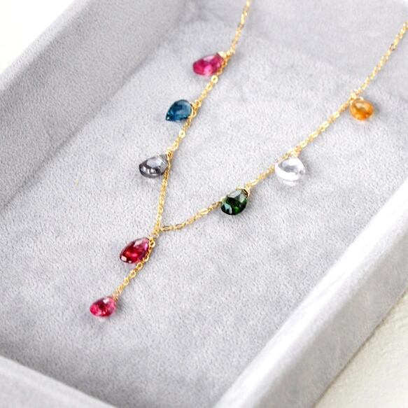 Tourmaline Mélodie ルベライトxマルチカラートルマリンxロンドンブルートパーズネックレス14kgf