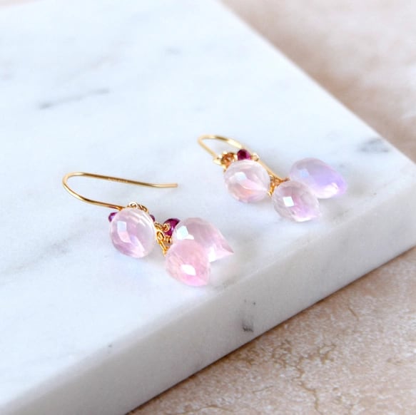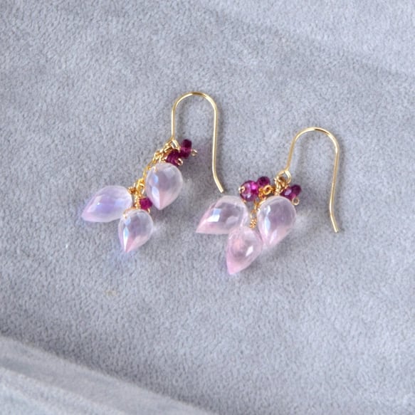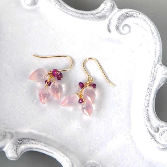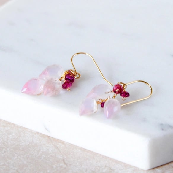 春告げの花蕾 ローズクォーツ × ピンクトルマリン ピアス14kgf