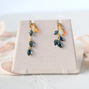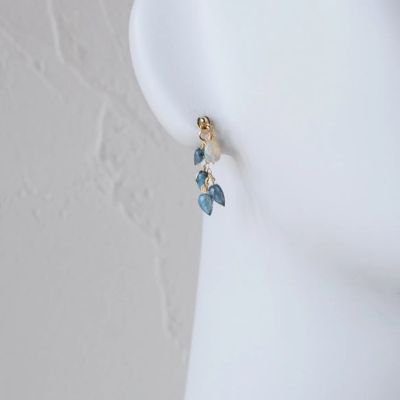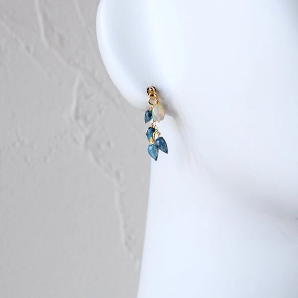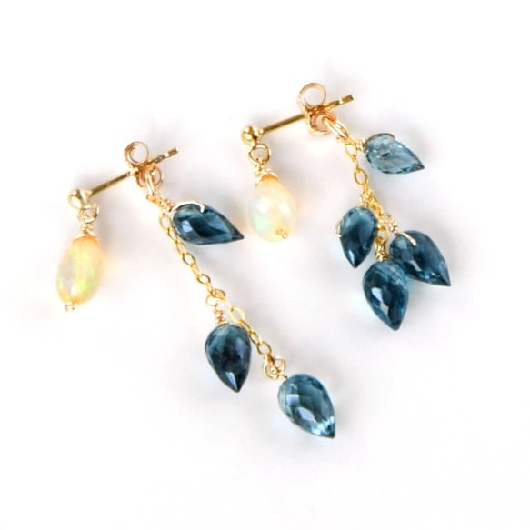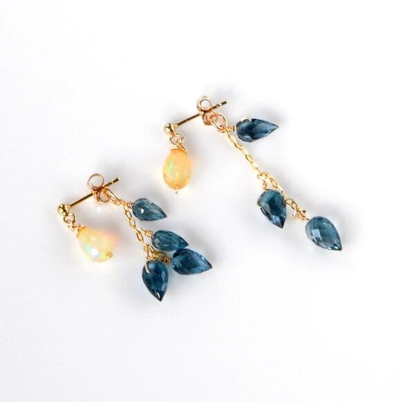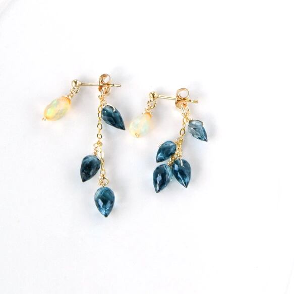 光影 ― プレシャスオパールスタッドピアスとロンドンブルートパーズ飾りキャッチ 14kgf