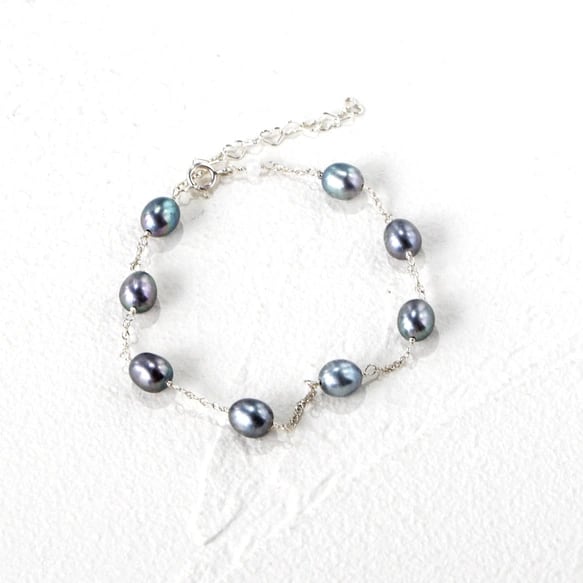 淡水パールをリズミカルに連ねたステーションブレスレットです。