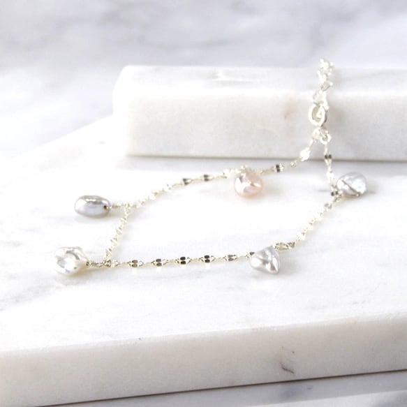 春光のゆらぎ ― シルバーケシパール ステーションブレスレット SV925