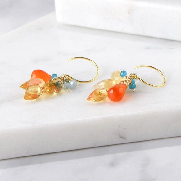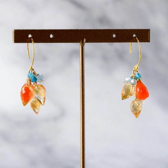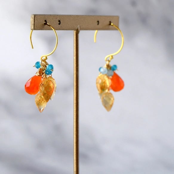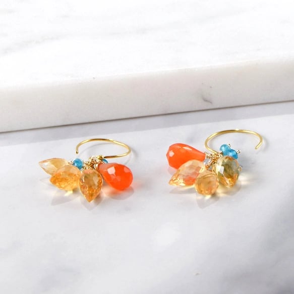 ビタミンカラーの花束 ― シトリン×カーネリアン ピアス 14kgf