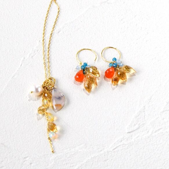 ・天然石:シトリンフラワーバド9mm/プレシャスオパールドロップカット6mm/シルバー