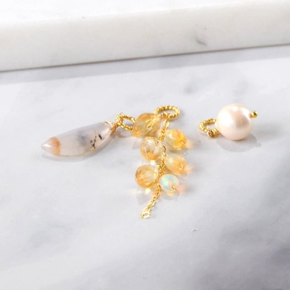 春光の余韻 ― デンドリティックオパール × シトリン × オパール × アコヤ真珠 3wayペンダントトップ14kgf