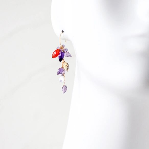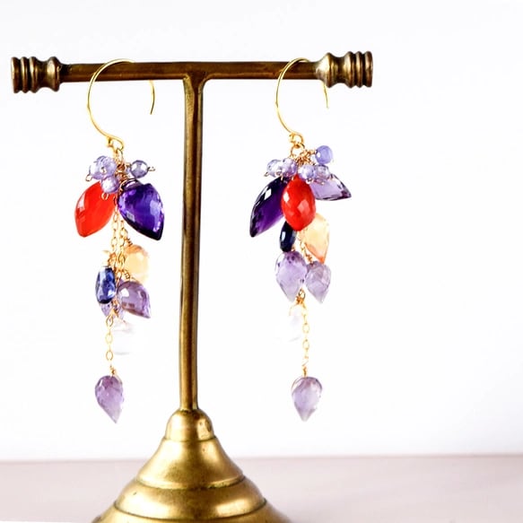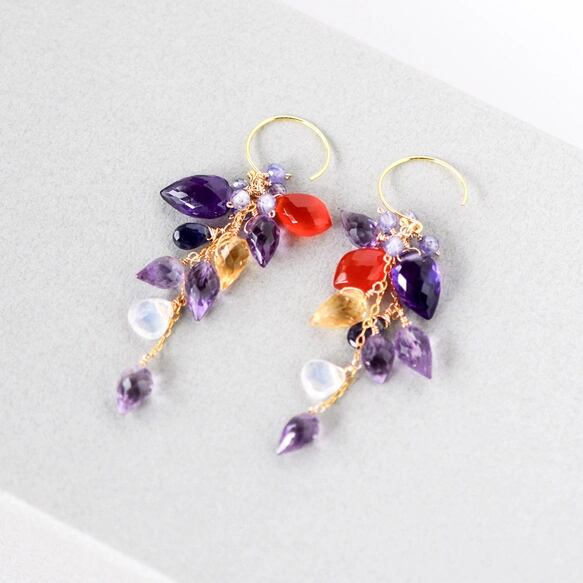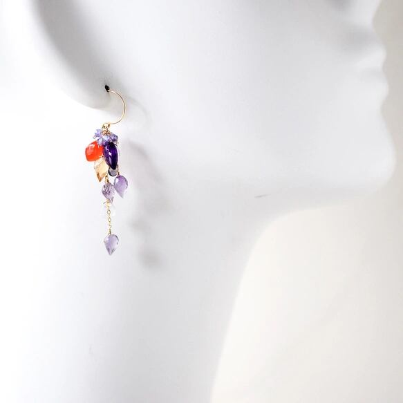 アメジストxカーネリアンシャンデリア ピアス14kgf