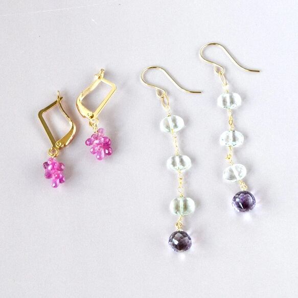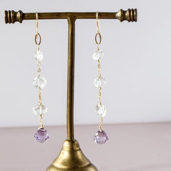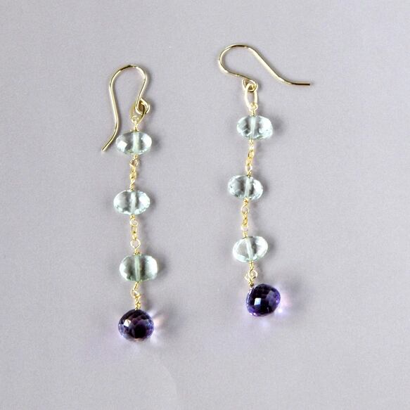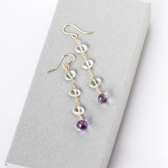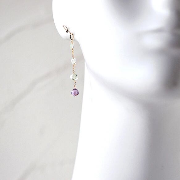玻璃(はり)の雫 ― Prasiolite & Pink Amethyst ステーション ピアス 14kgf