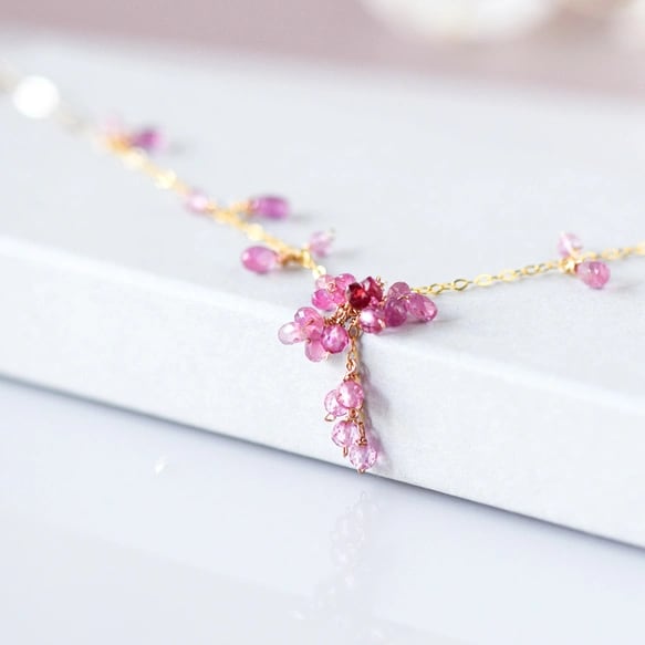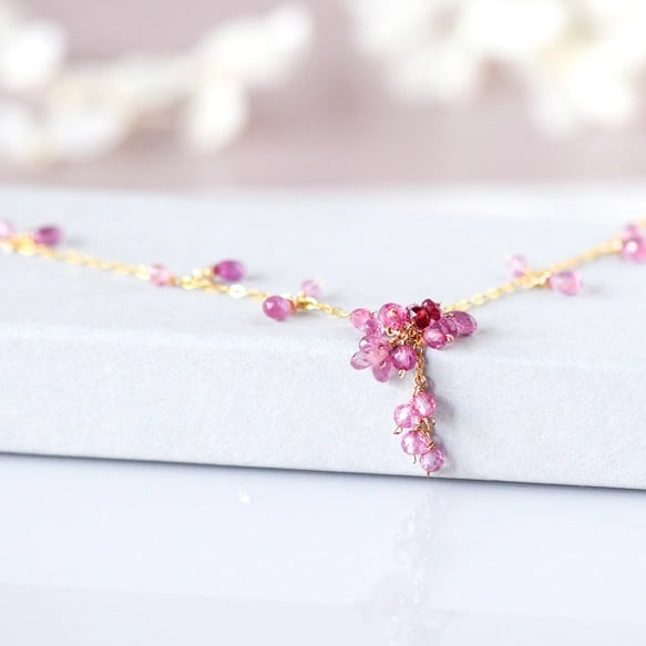 チェーン部分にも同じピンクサファイアをバランスよく配し、
