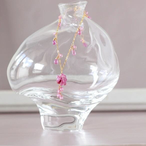 ピンクトパーズを花房のようにキュッと束ね、